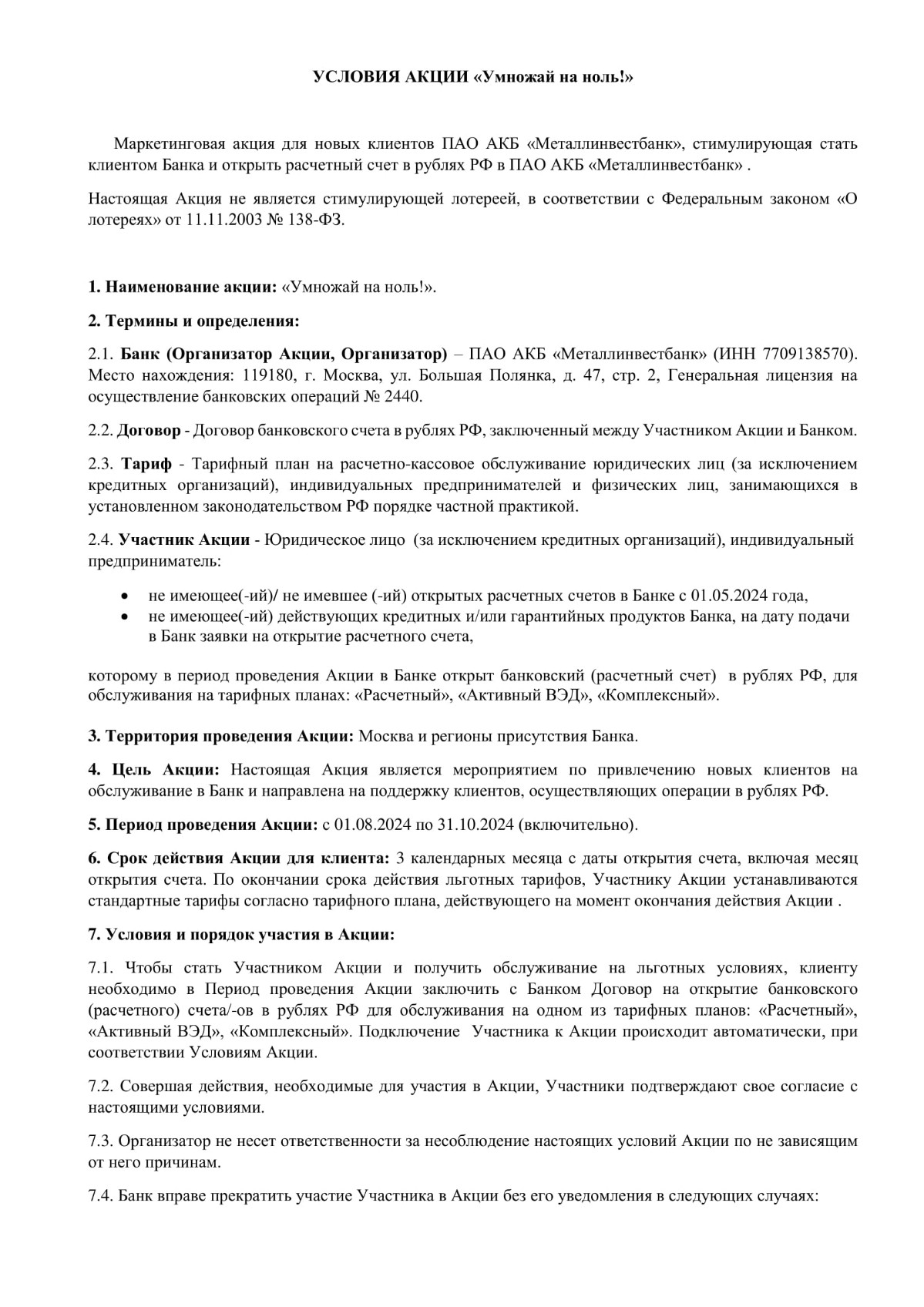 Акция для новых клиентов «Умножай на ноль» для новых клиентов Банка.