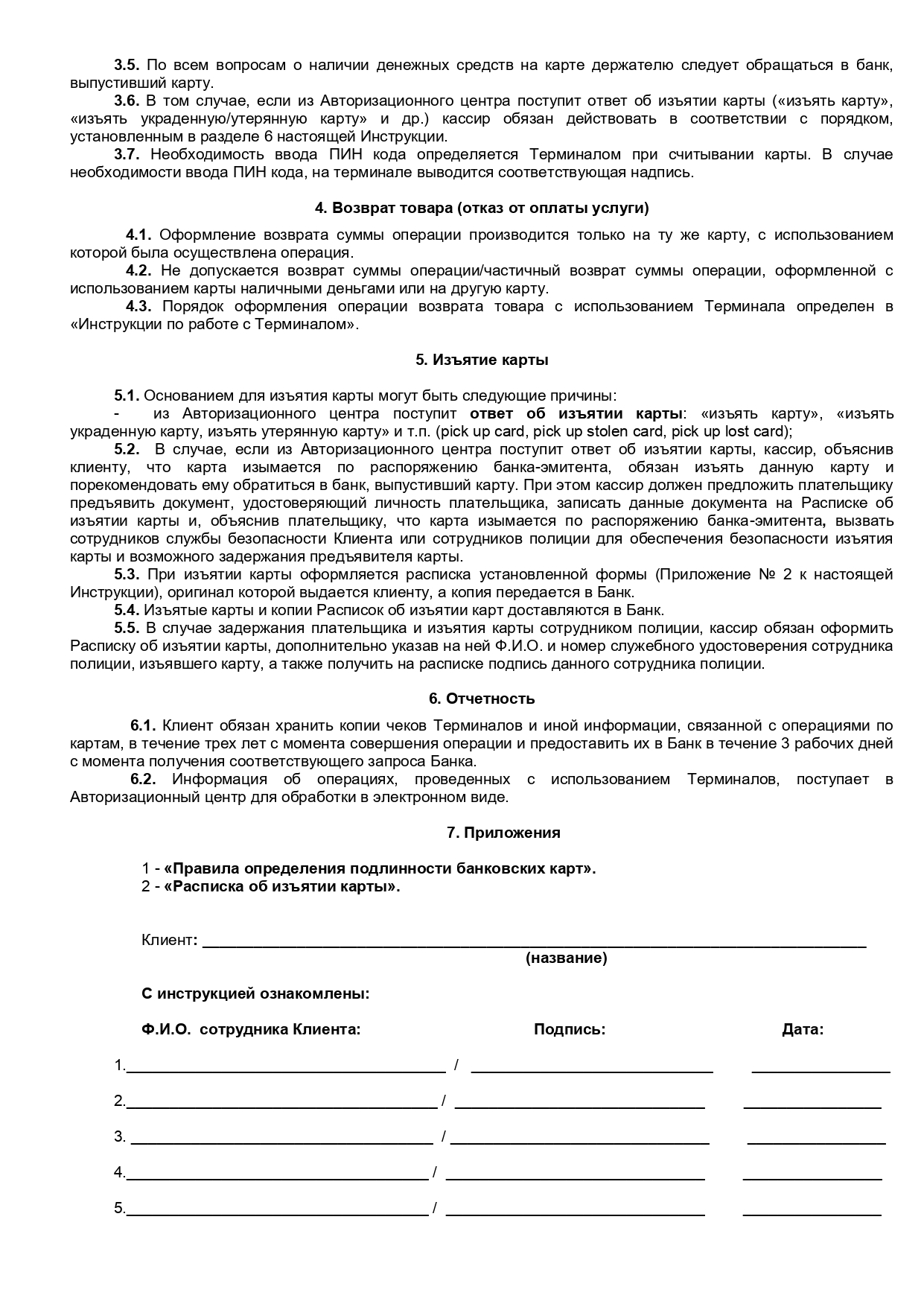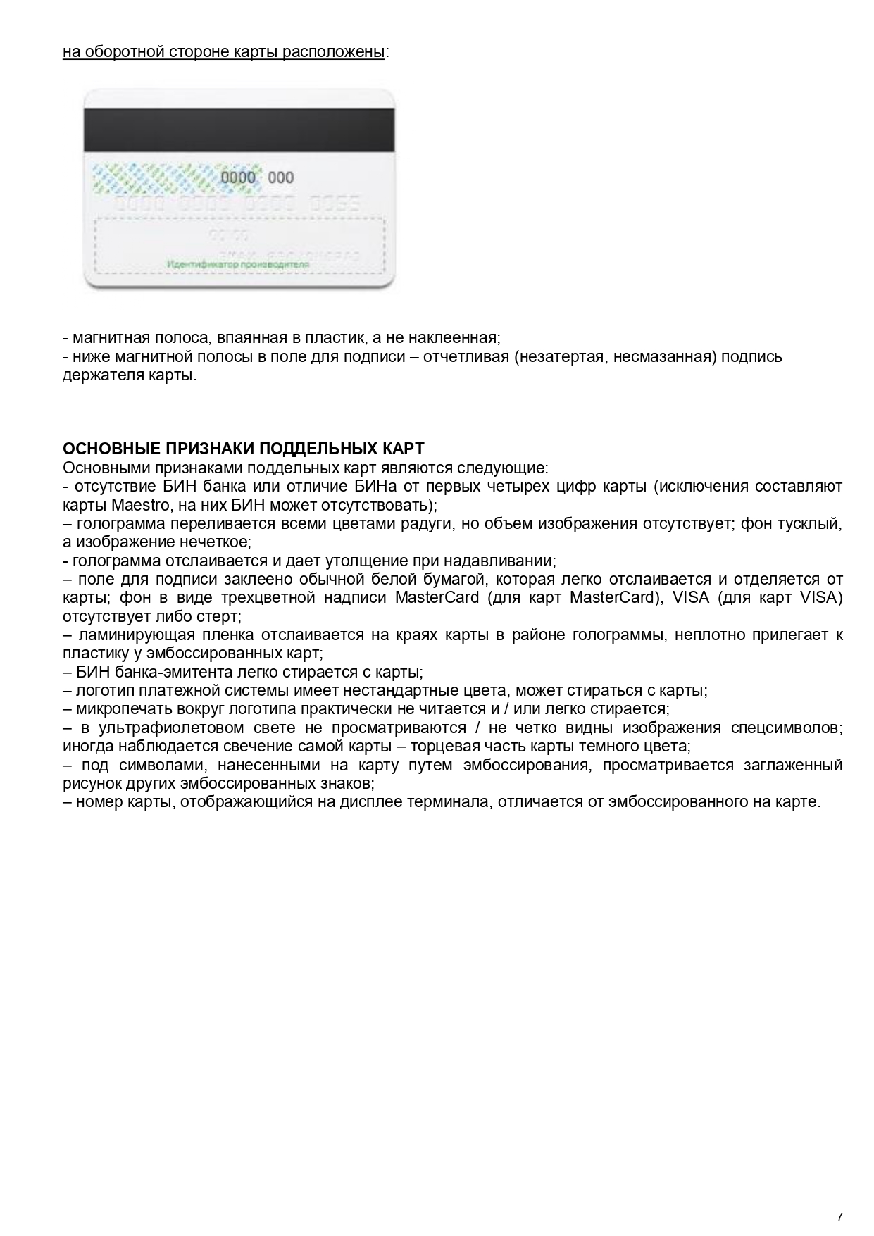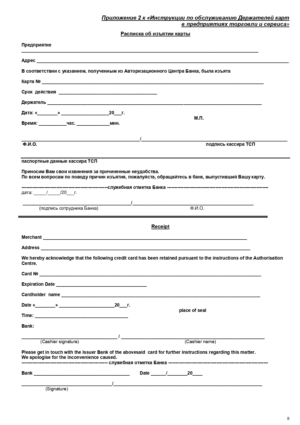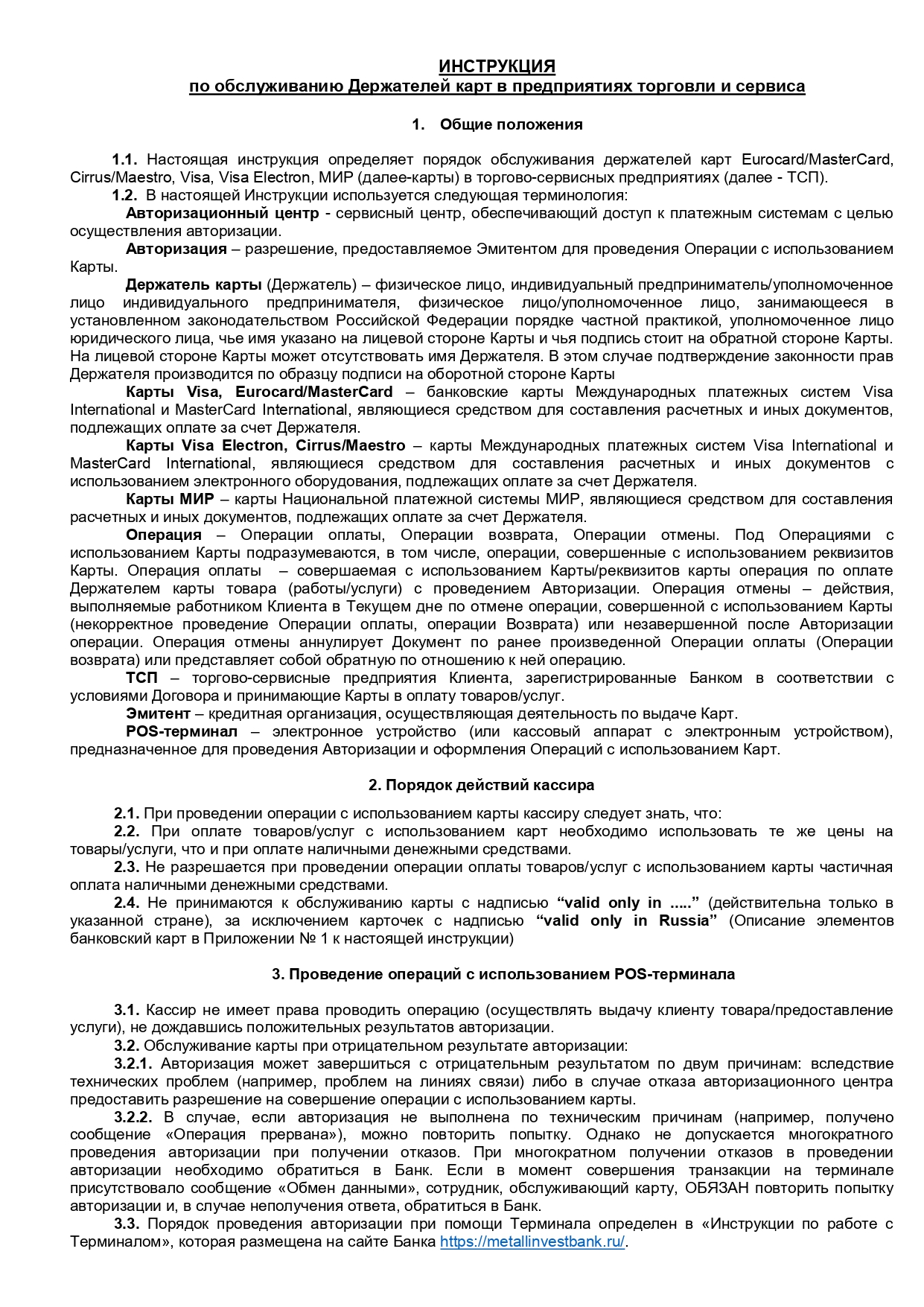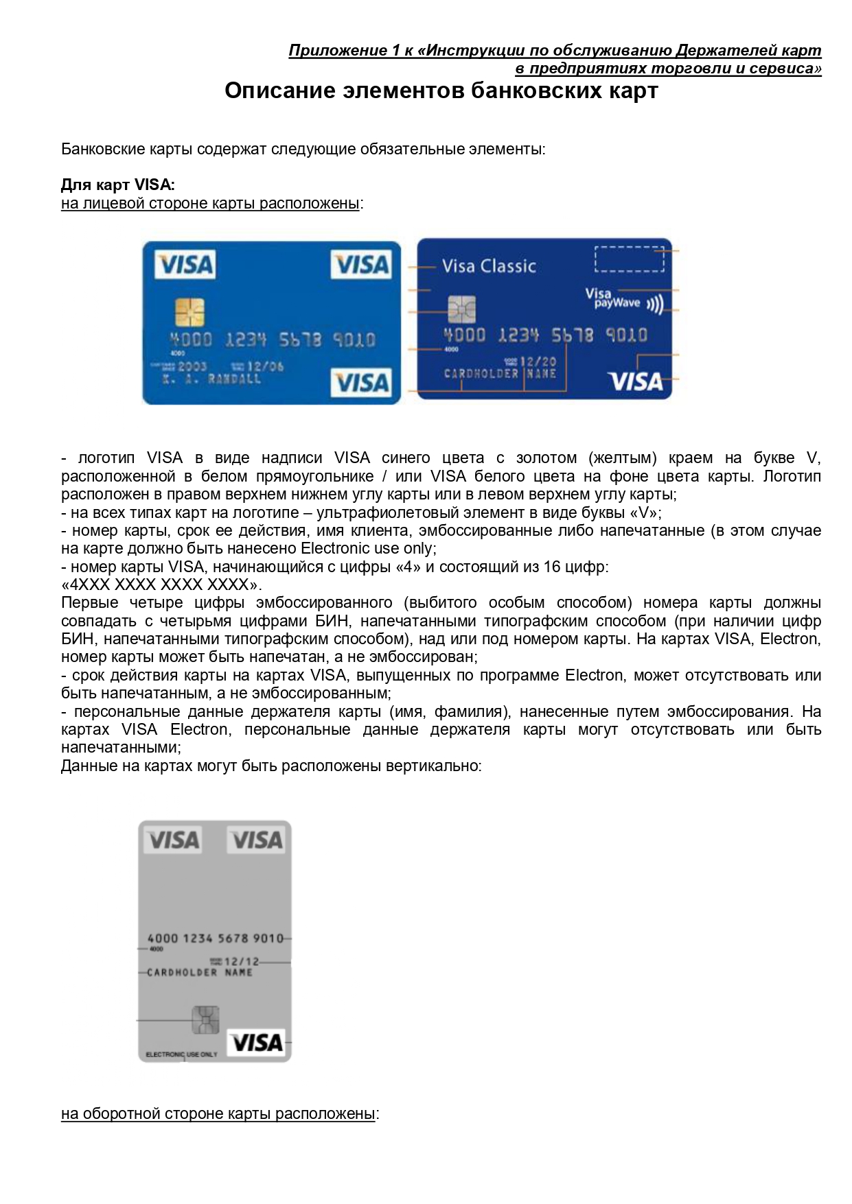 Инструкция по обслуживанию Держателей карт в предприятиях торговли и сервиса