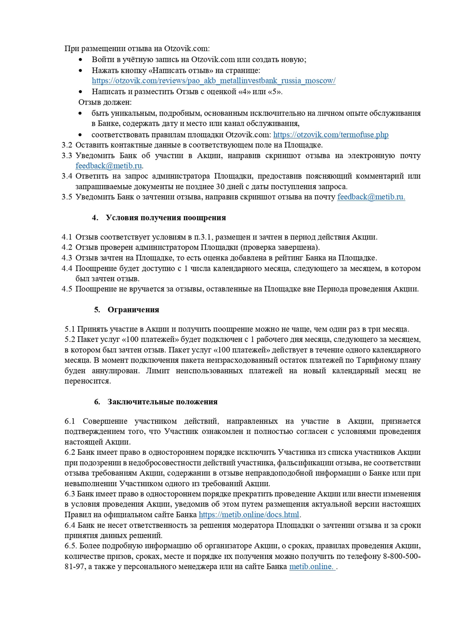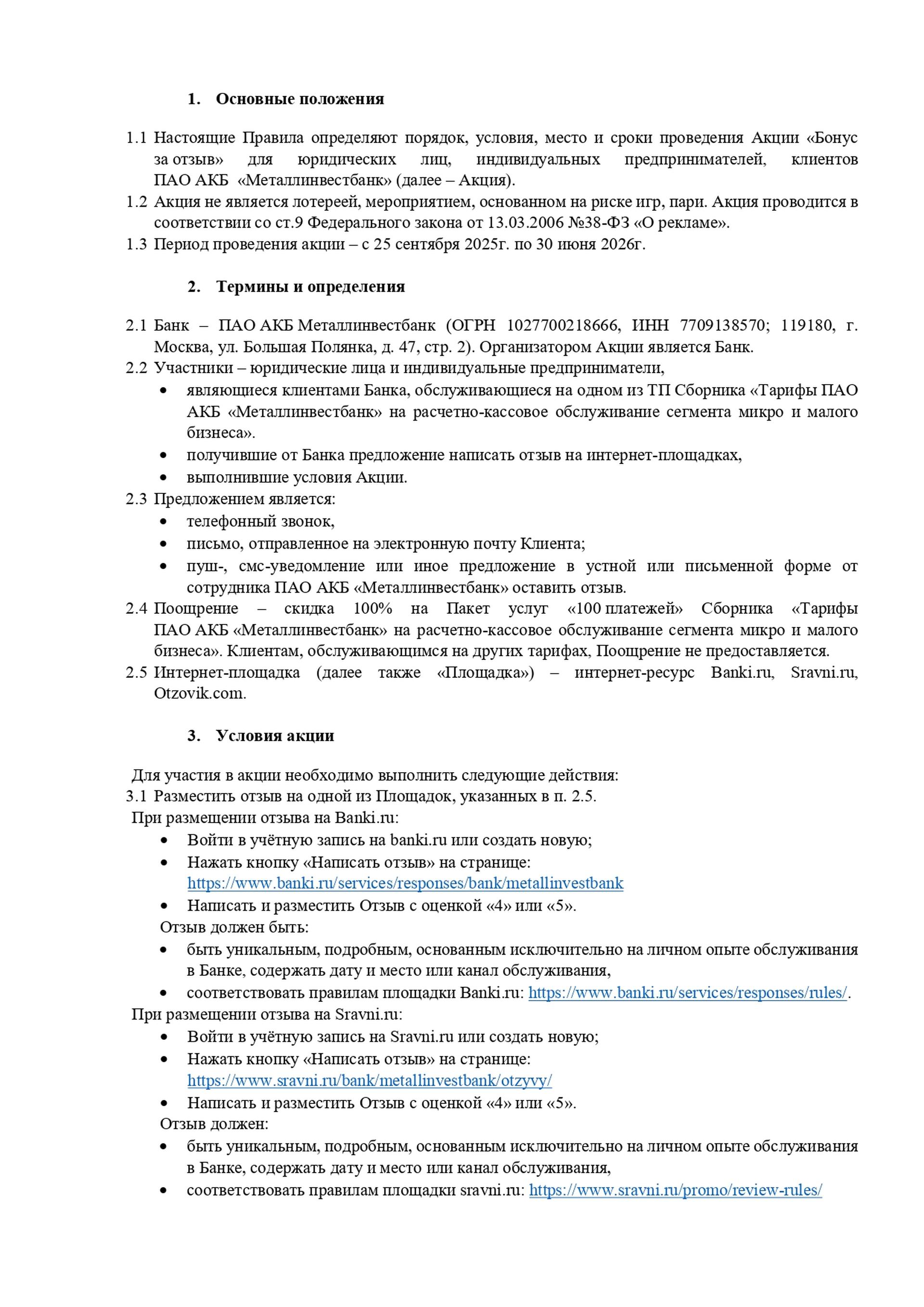 Правила акции «Бонус за отзыв»
