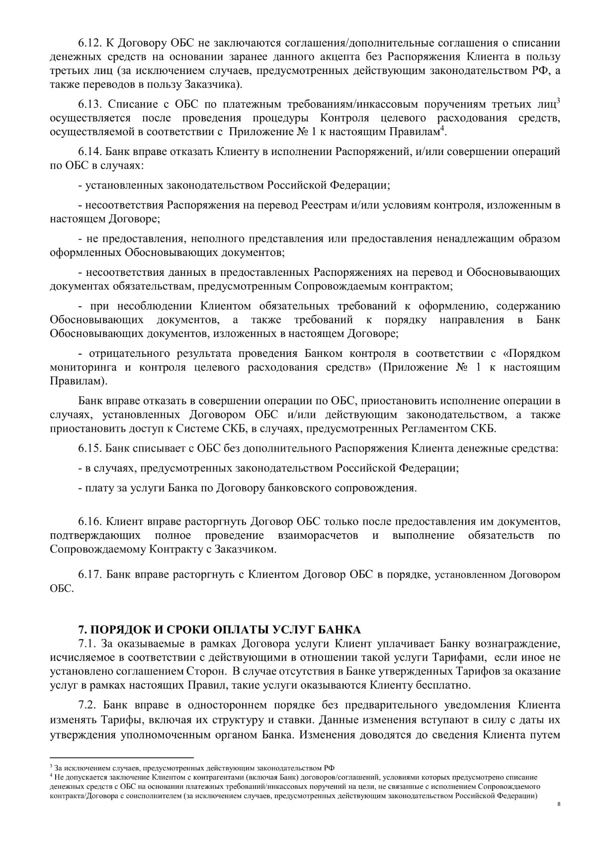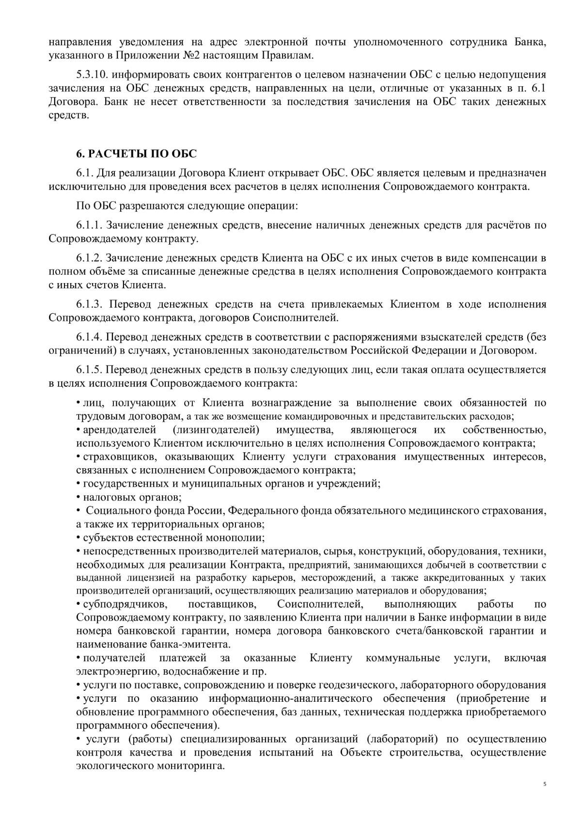 Правила контрактного банковского сопровождения